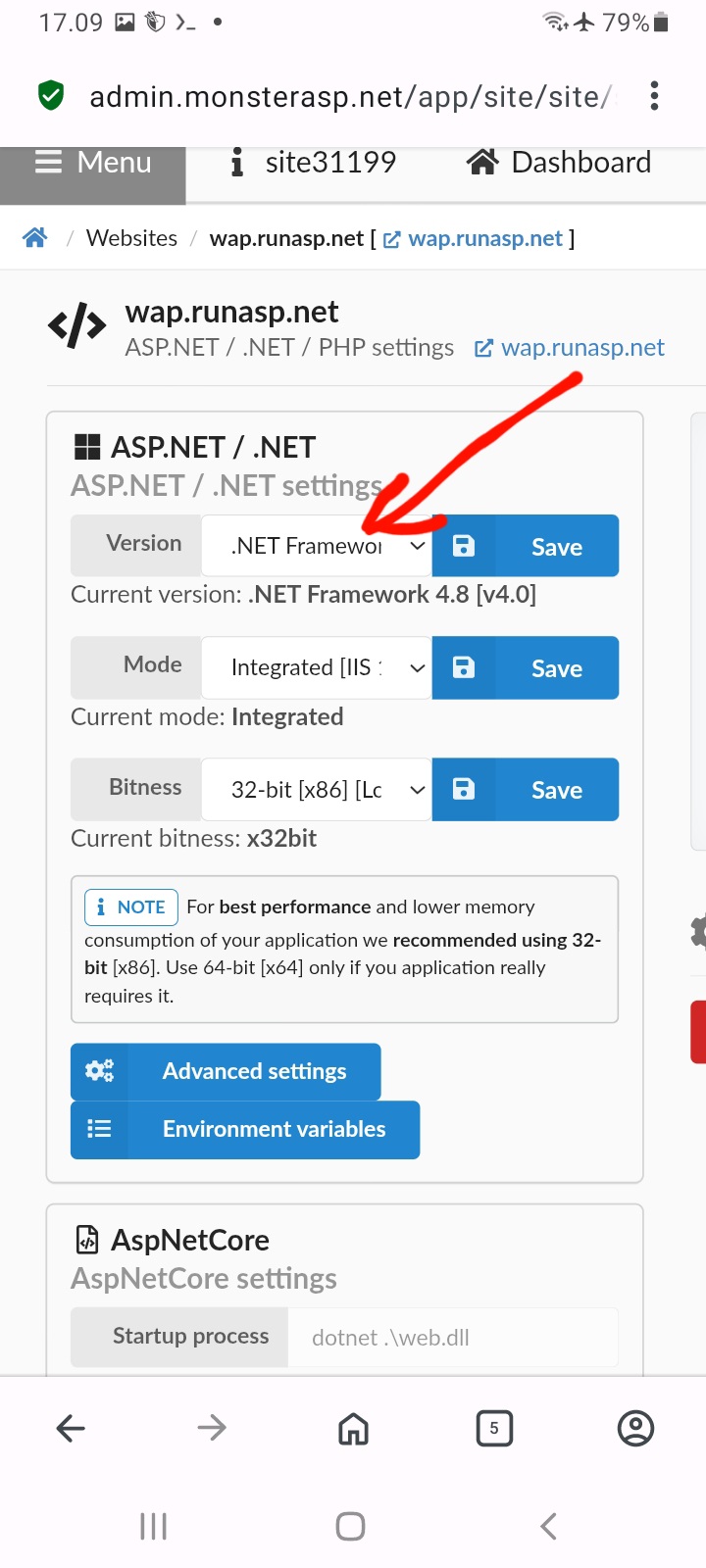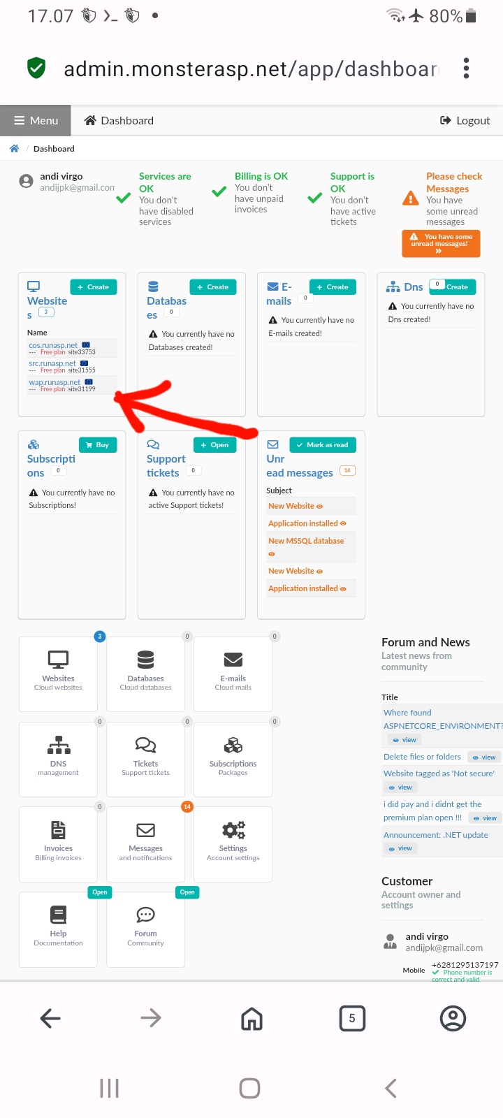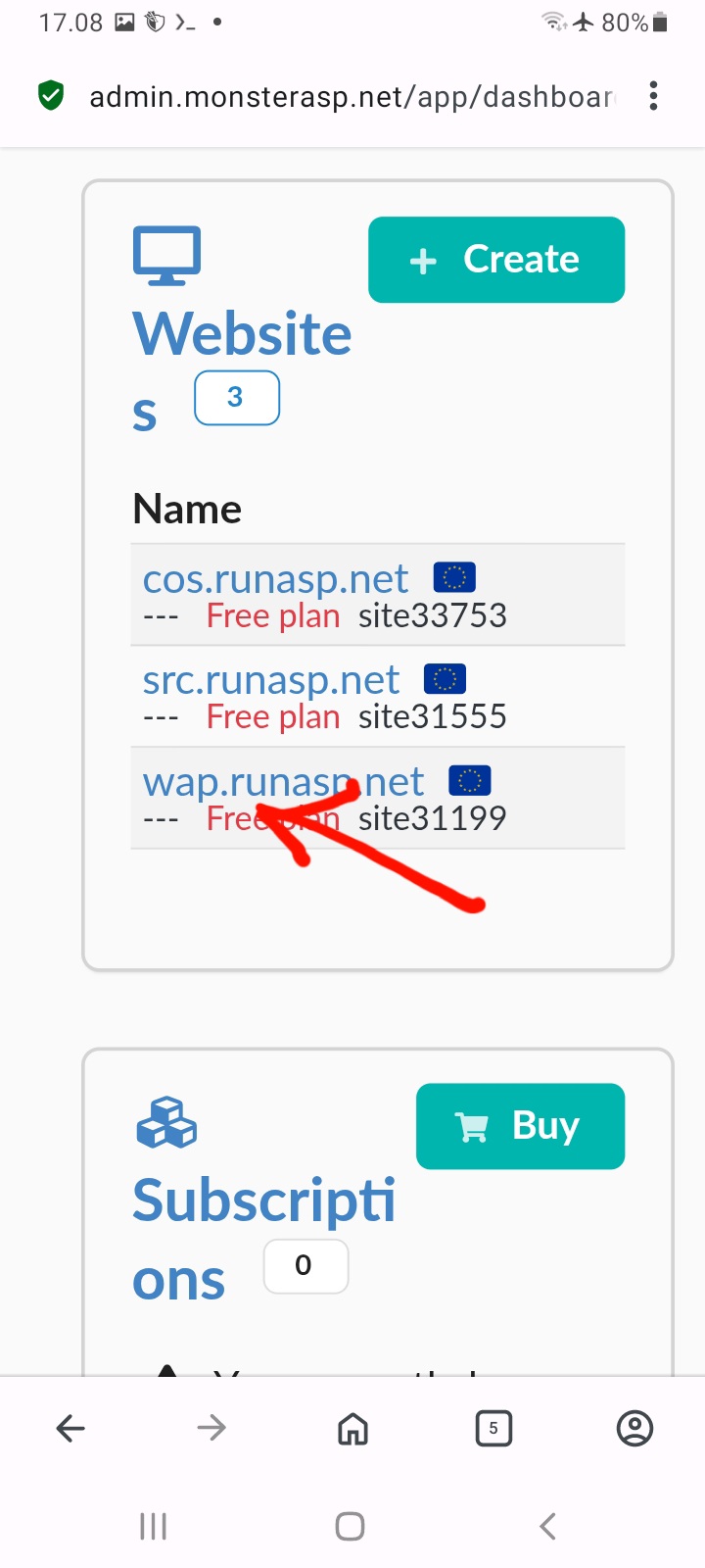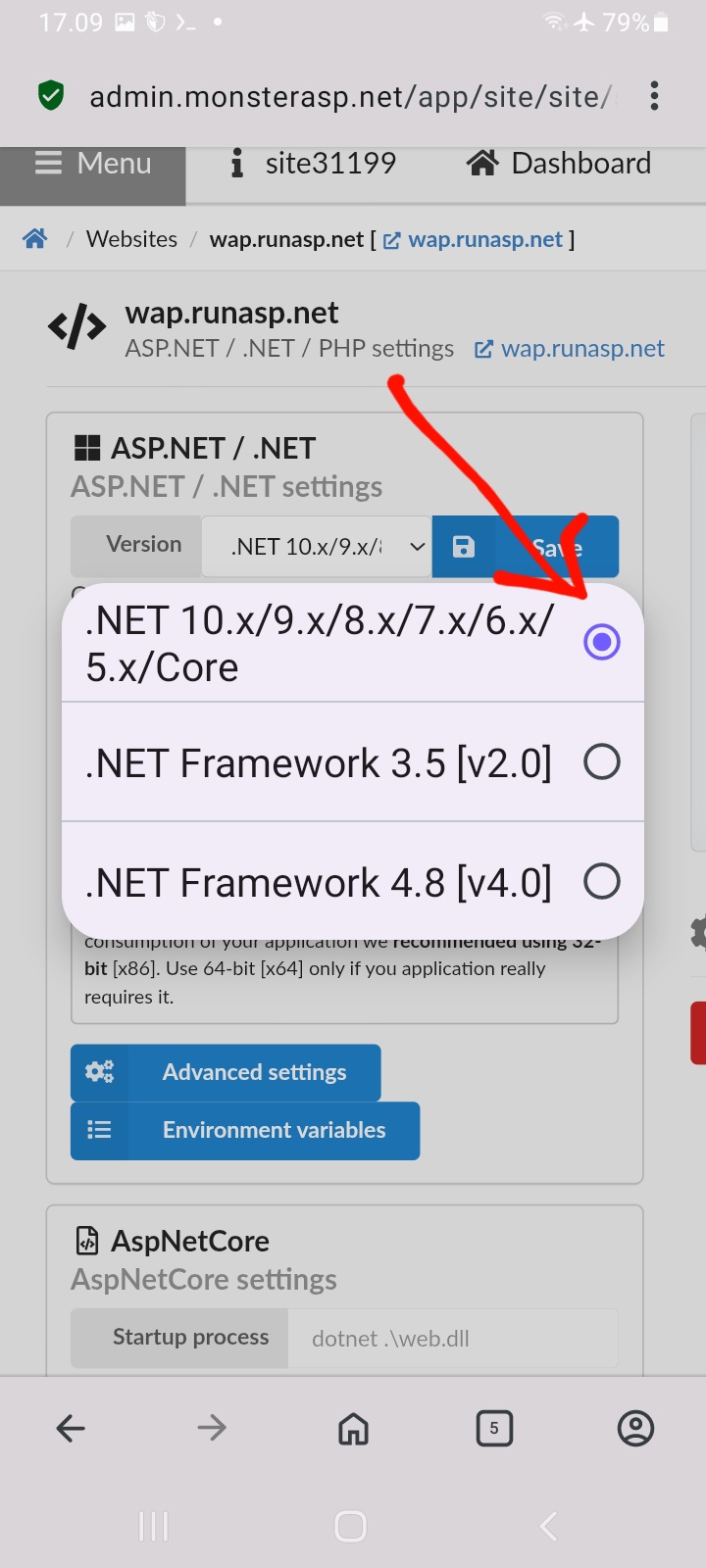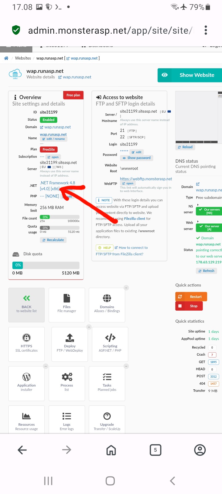 pilih website yang di daptarin tadi. contoh web saya wap.runasp.net