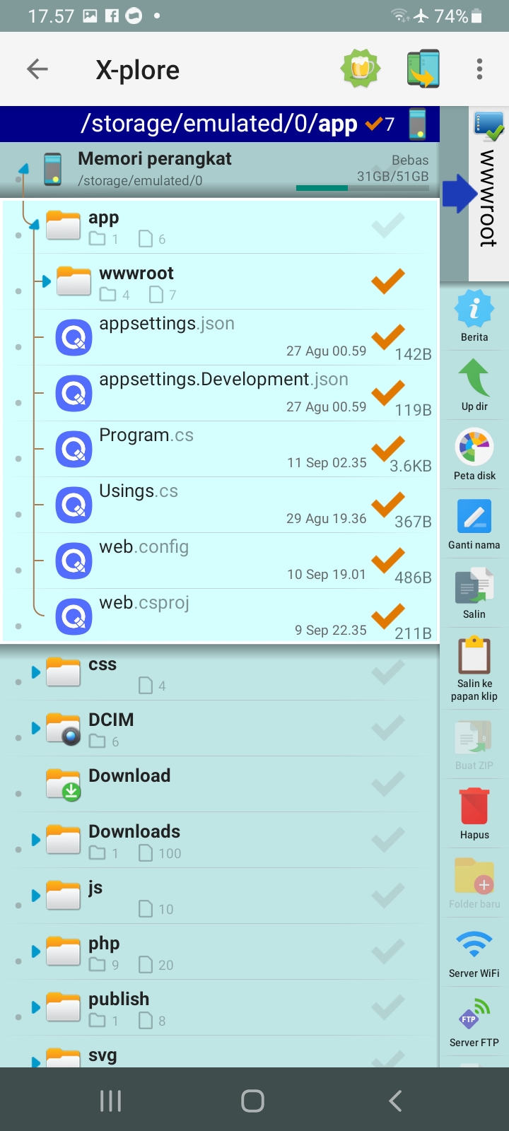 Untuk mengelola file di x-plore buka ftp.