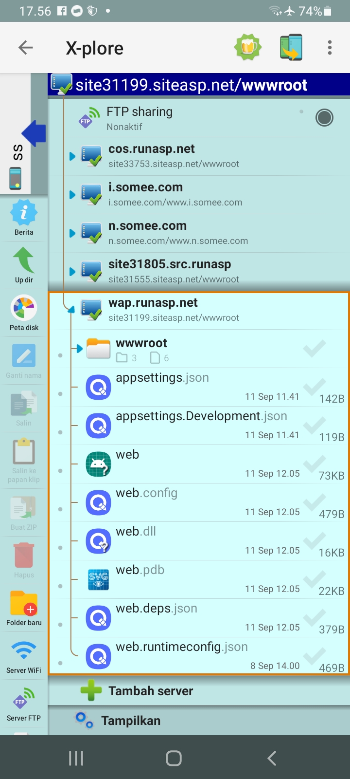 buka ftp di tab 1 x- plore....