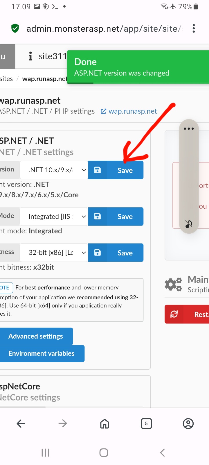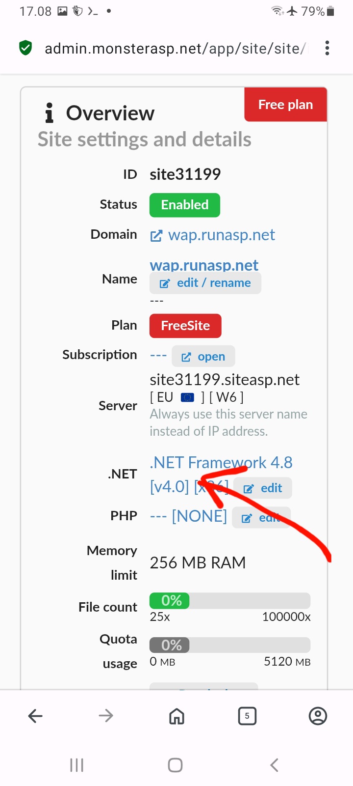 setelah masuk ke pengaturan websit, contoh saya masuk ke website wap.runasp.net